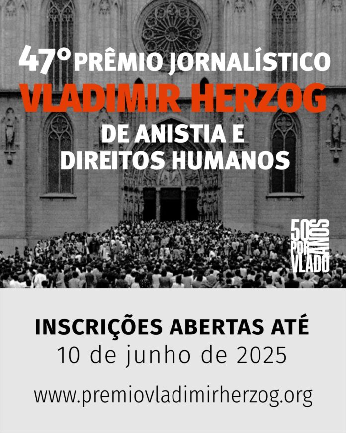 As inscrições para a 47ª edição do Prêmio Jornalístico Vladimir Herzog de Anistia e Direitos Humanos estão abertas até 10 de junho. O mais tradicional prêmio da imprensa brasileira reconhece jornalistas, repórteres fotográficos, escritores e artistas do traço que, por meio do trabalho cotidiano, defendem a democracia, a justiça e os direitos humanos.
