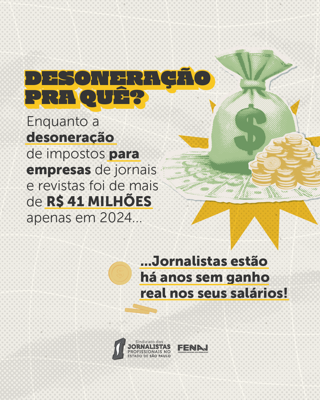 O Sindicato dos Jornalistas Profissionais no Estado de São Paulo (SJSP) e profissionais das redações de jornais e revistas da capital realizam, nesta quarta-feira (6 de agosto), uma ação unificada nas redes sociais para cobrar valorização da categoria na Campanha Salarial de 2025.