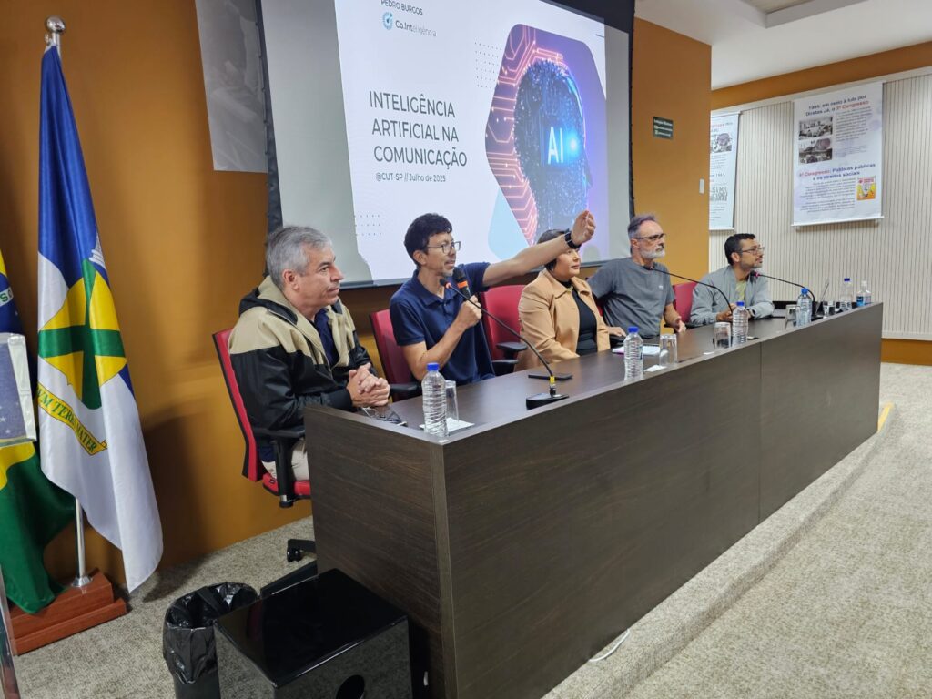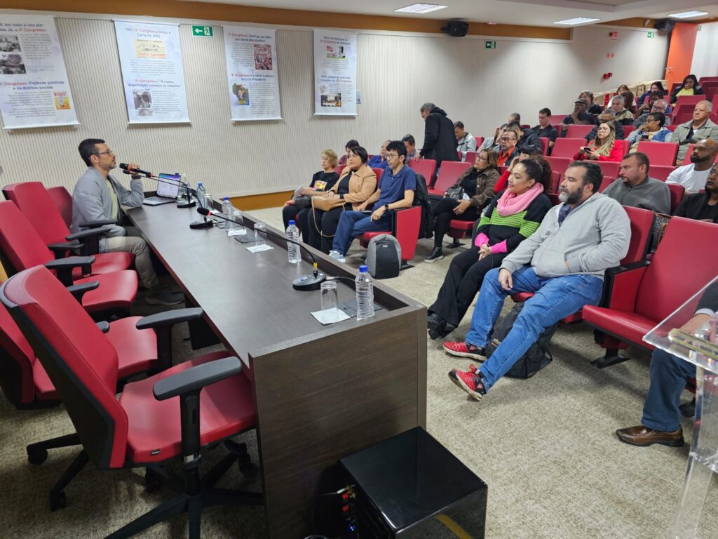 A Regional ABCD do Sindicato dos Jornalistas Profissionais no Estado de São Paulo (SJSP) participou, na quinta-feira (17), da Oficina de Engenharia de Prompt, promovido pela Subsede da CUT-SP ABC, na sede do Sindicato dos Químicos, em Santo André. O curso foi ministrado pelo jornalista e consultor em IA Pedro Burgos.