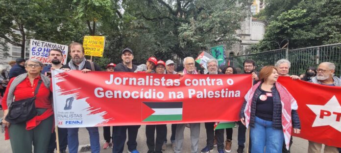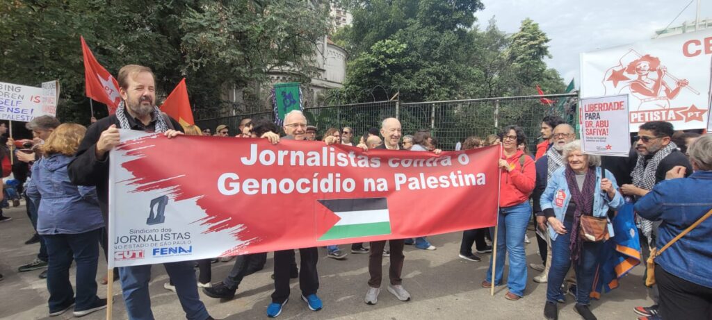 “Não podemos nos calar diante do genocídio do povo palestino, dos crimes diários cometidos na Faixa de Gaza e em outros territórios do Oriente Médio. E, especialmente, diante dos ataques sistemáticos contra jornalistas. Infelizmente, estamos vendo um número sem precedentes de profissionais da imprensa sendo assassinados por Israel. Diante dessa realidade, não basta denunciar, é nosso dever participar ativamente de atos e mobilizações em solidariedade ao povo palestino”, defende Tanji.